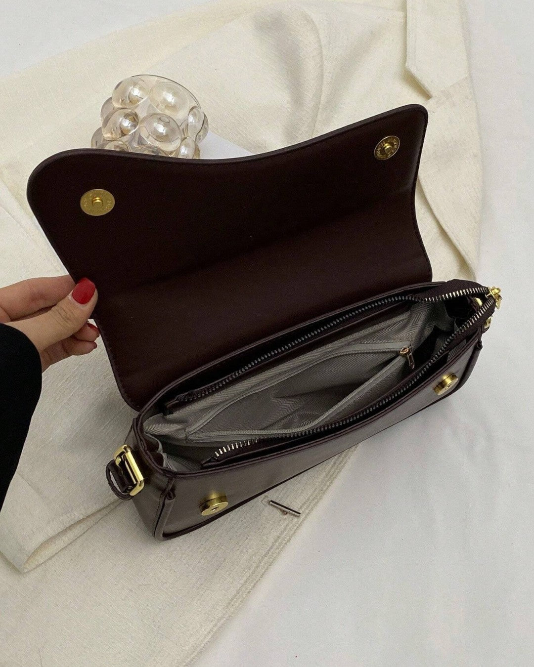 Den allsidige strukturen gjør at du kan bære med deg alle nødvendigheter samtidig som du tilfører et tidløst preg til ethvert antrekk – perfekt for overgangen fra dag til kveld.